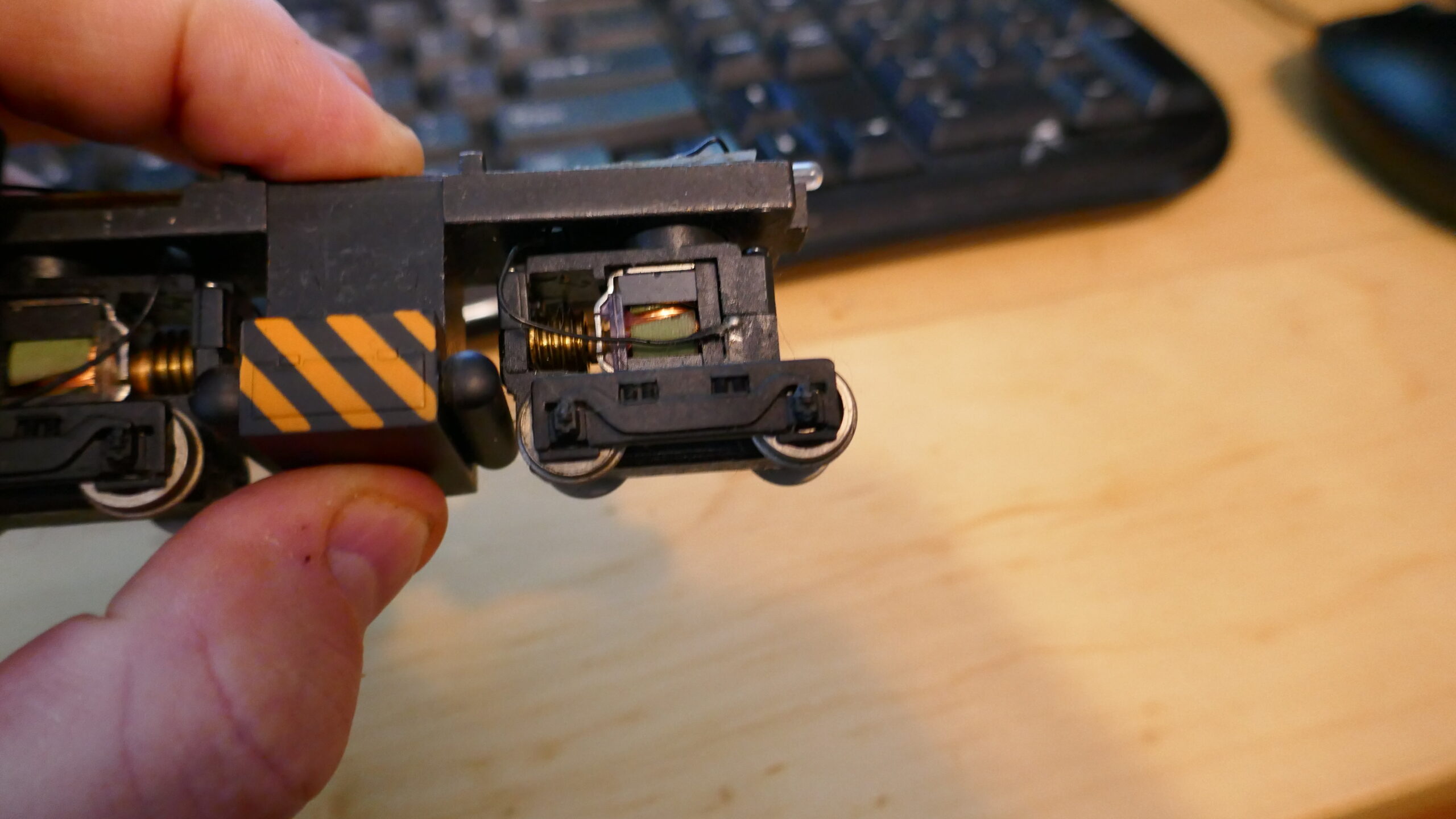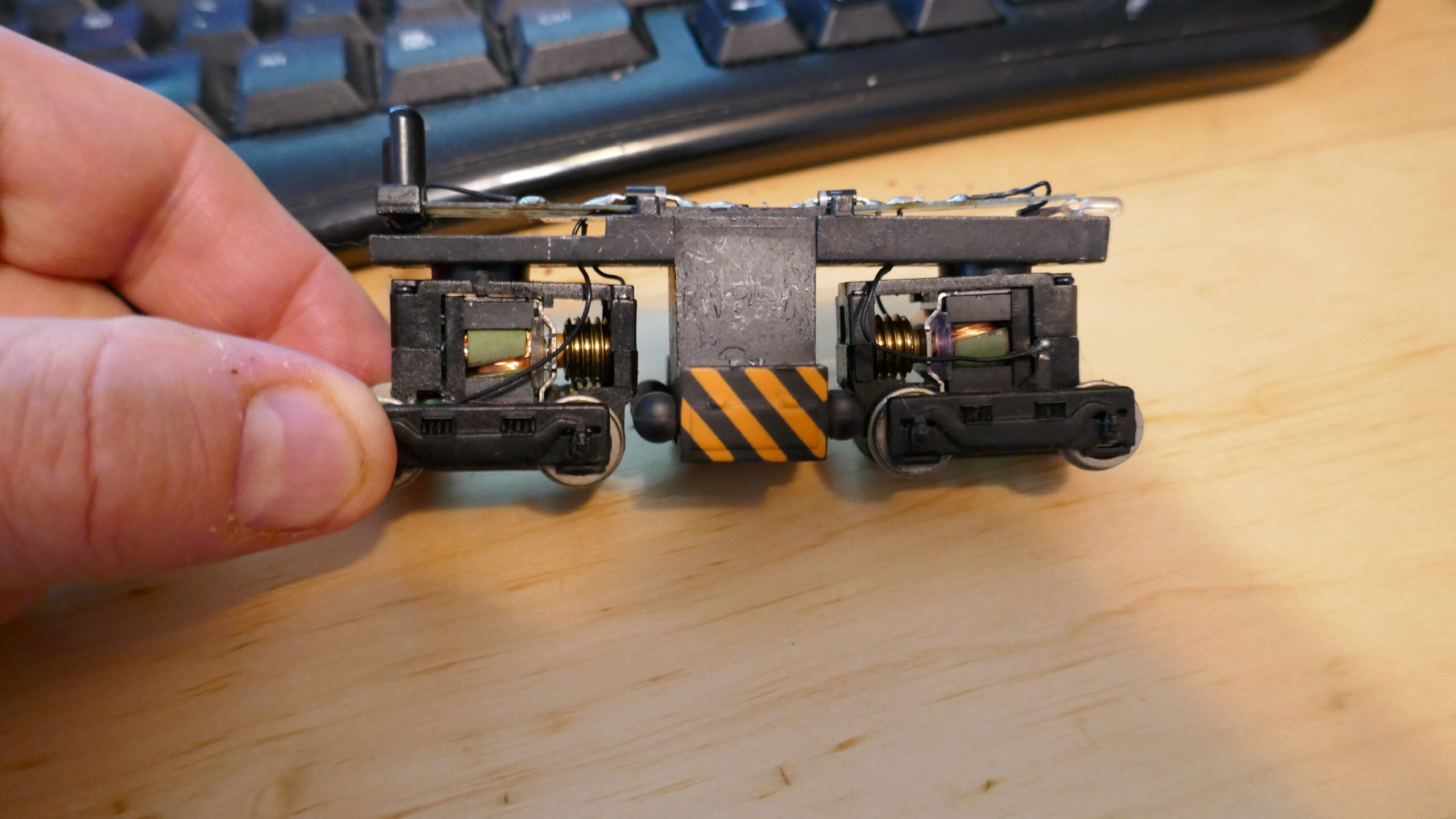 This is cool, but on the other hand it does make reassembly more complicated. I still haven’t managed to reinsert both trucks in the Tyco engine.